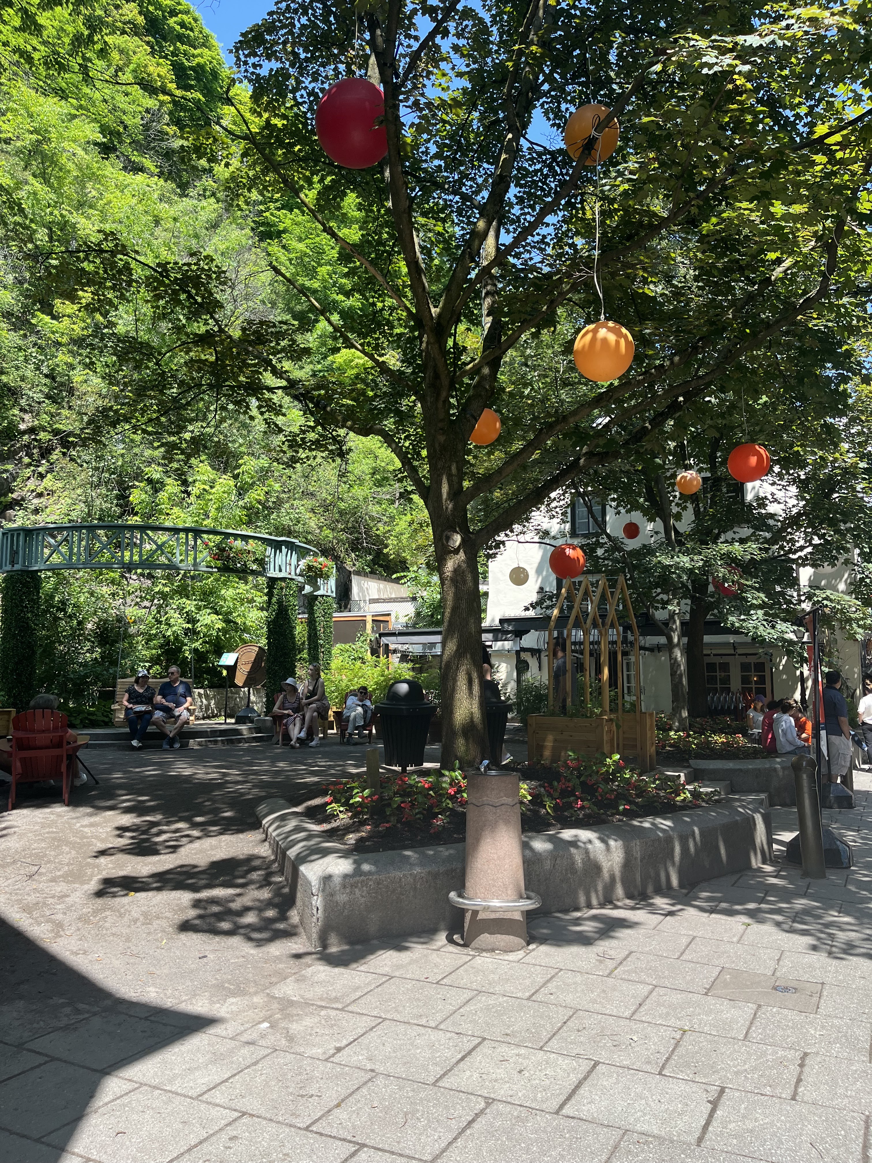 Around 10am the four of us headed out while Grams and Papa stayed back and enjoyed some Netflix and rest. We ventured to Old Quebec which is home to loads to old French inspired buildings and lots of shops for the constant tourism. We continued to walk and enjoy the scenery. The sun was blazing today and 3/4 of us forgot sunglasses so there was a lot of squinting and searching for the shady side of the street. The biggest showstopper in town is the Chateau Frontenac (the Fairmont) which is a fancy hotel that Winston Churchill and Grace Kelly would frequent. It sits up on a hillside and looks down on the harbor and the St. Lawerence River. There is even a little ski lift of sorts to take you up or down depending on which way your legs aren’t willing to walk.